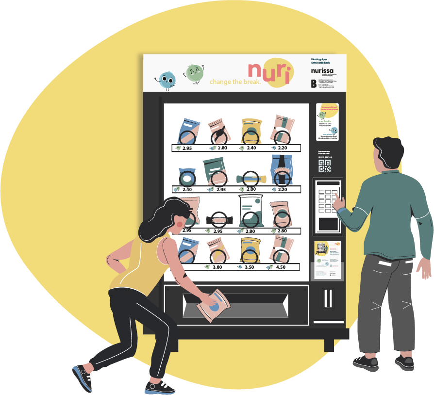 Mit nuri förderst du gesündere und nachhaltigere Essgewohnheiten, auch während deiner Pause. Entdecke nuri-Produkte im Automaten.